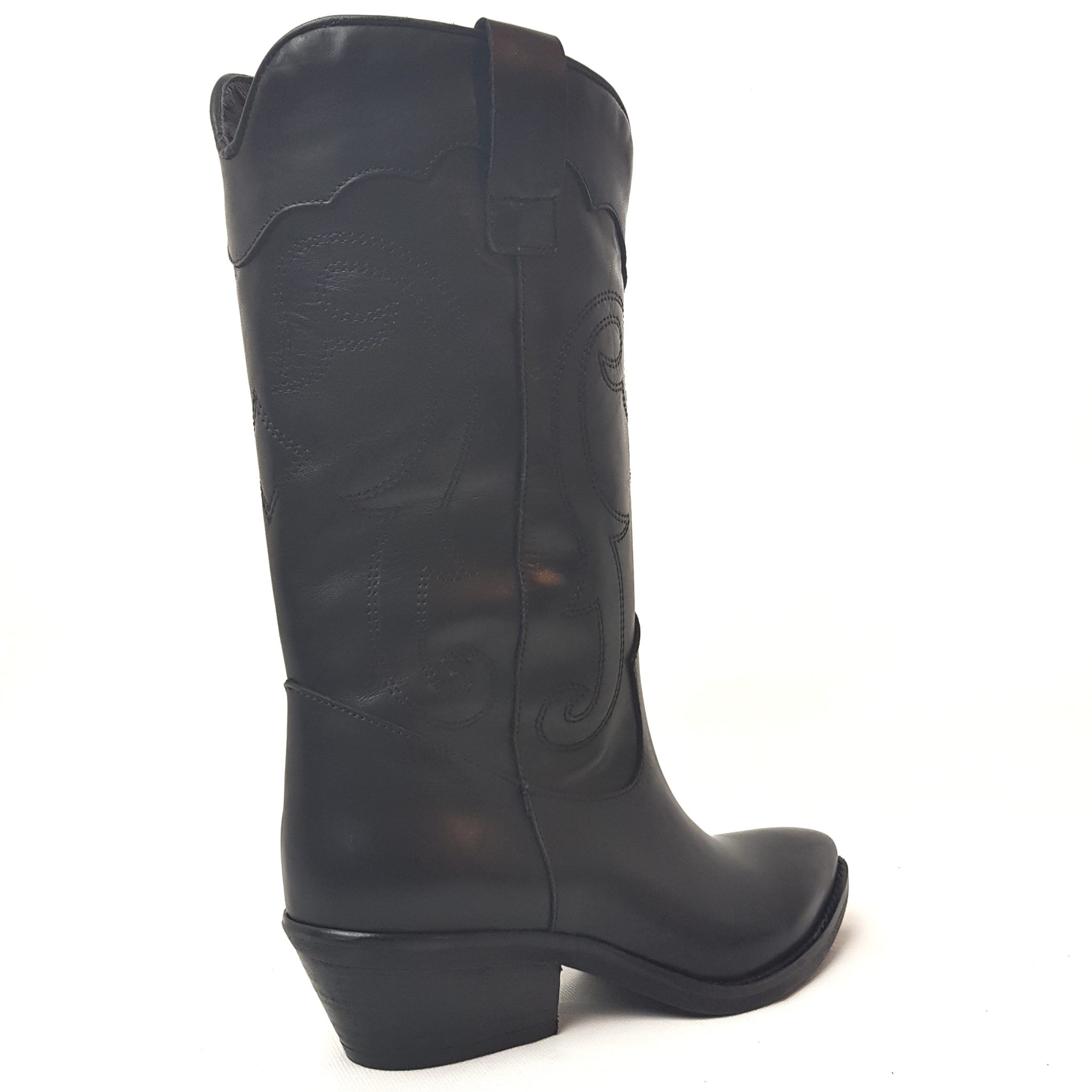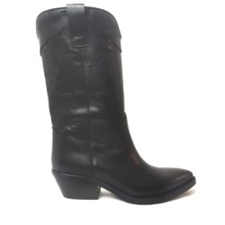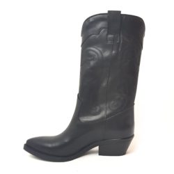 Zero Poesie stivaletto texano a metà polpaccio in vera pelle nera con ricami laterali. Tacco 50 mm .